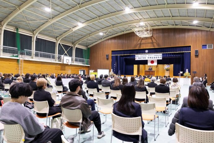 学生たちの晴れやかな姿と笑顔が印象的でした。卒業証書授与、学校長式辞、来賓の方々からの祝辞、表彰、祝電紹介、表彰などが行われました。